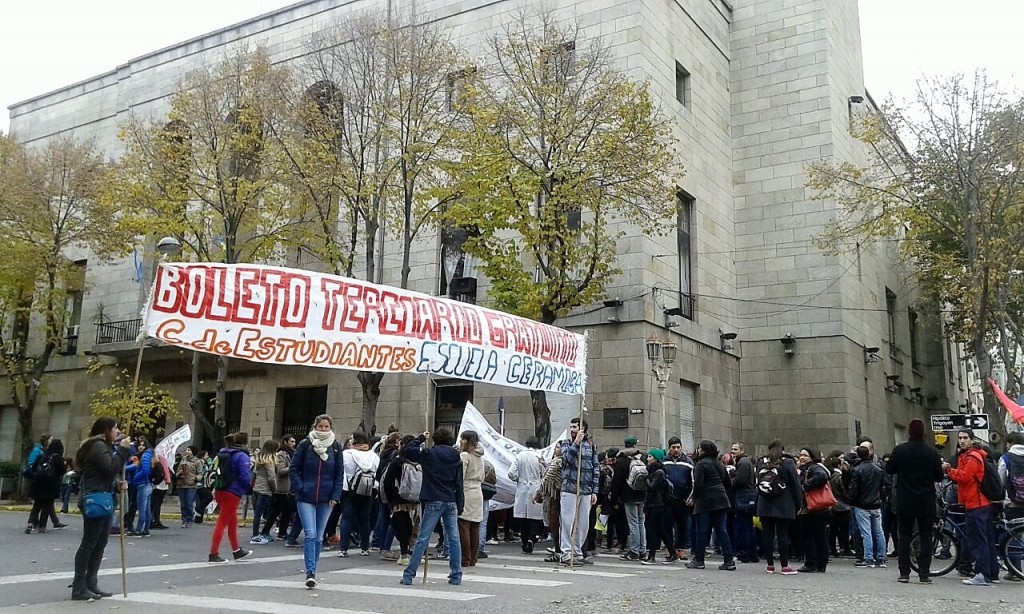 Tras haber una realizado una marcha desde el complejo universitario, estudiantes universitarios se decidieron manifestar frente al Palacio Municipal para reclamar el tratamiento del boleto estudiantil.