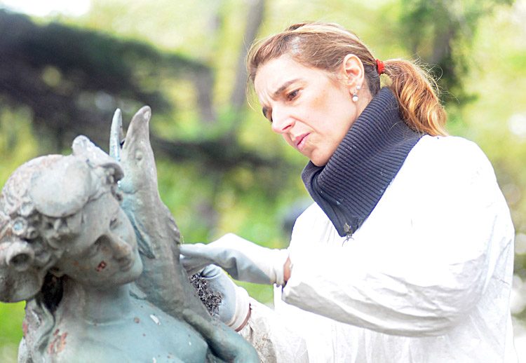 Addiechi, que se ocupa personalmente de hacer cada una de las restauraciones y aún no tiene un presupuesto definido para su área, empezó a recuperar los monumentos de la Plaza Colón. Su primer trabajo fue en la “Mujer Bañándose”, una obra hecha de mármol de Carrara. “Tenía rota la cabeza y estaba absolutamente grafiteada con aerosol rojo y azul que penetra en el mármol y es muy difícil de sacar”, cuenta. Y explica sobre su trabajo: “Fui retirando las diferentes capas de pintura y me encontré con el mármol impregnado de pigmentos, pero por suerte pude retirar absolutamente todo. También se logró desmontar la cabeza, hacerle el tratamiento que correspondía y dejarla en buen estado”.