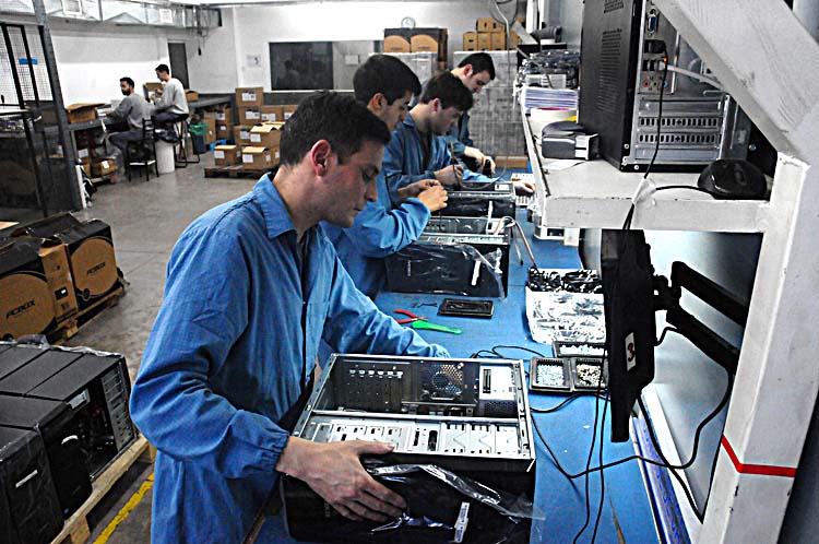 El proceso de ensamble significa “tomar las piezas que componen el producto e ir armando cada una de esas piezas hasta tener el producto final”, detalló Ortiz. Para una tableta, por ejemplo, se necesitan “8 personas para desarrollar la tarea de ensamble, mientras que para un monitor 10 y para una notebook 15”, describió.