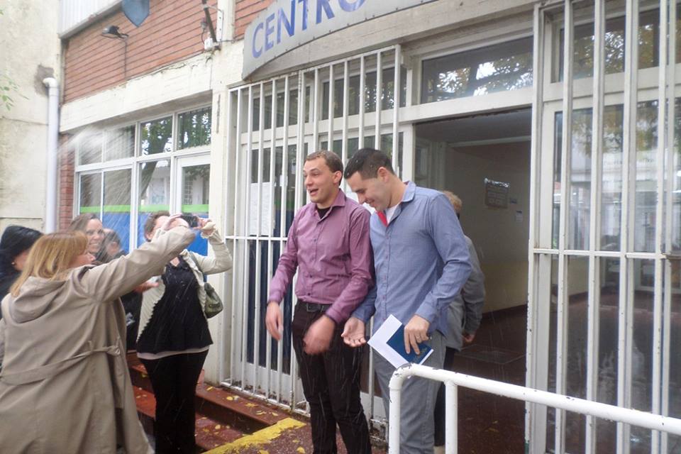 En la sede local del Registro Provincial de las Personas se realizó la sencilla pero emotiva ceremonia. Allí el juez Daniel Gastón certificó el enlace entre la pareja conformada por Franco Arco, oriundo de Mar del Plata, y Gonzalo Matías Carlevaris, de Capital Federal.