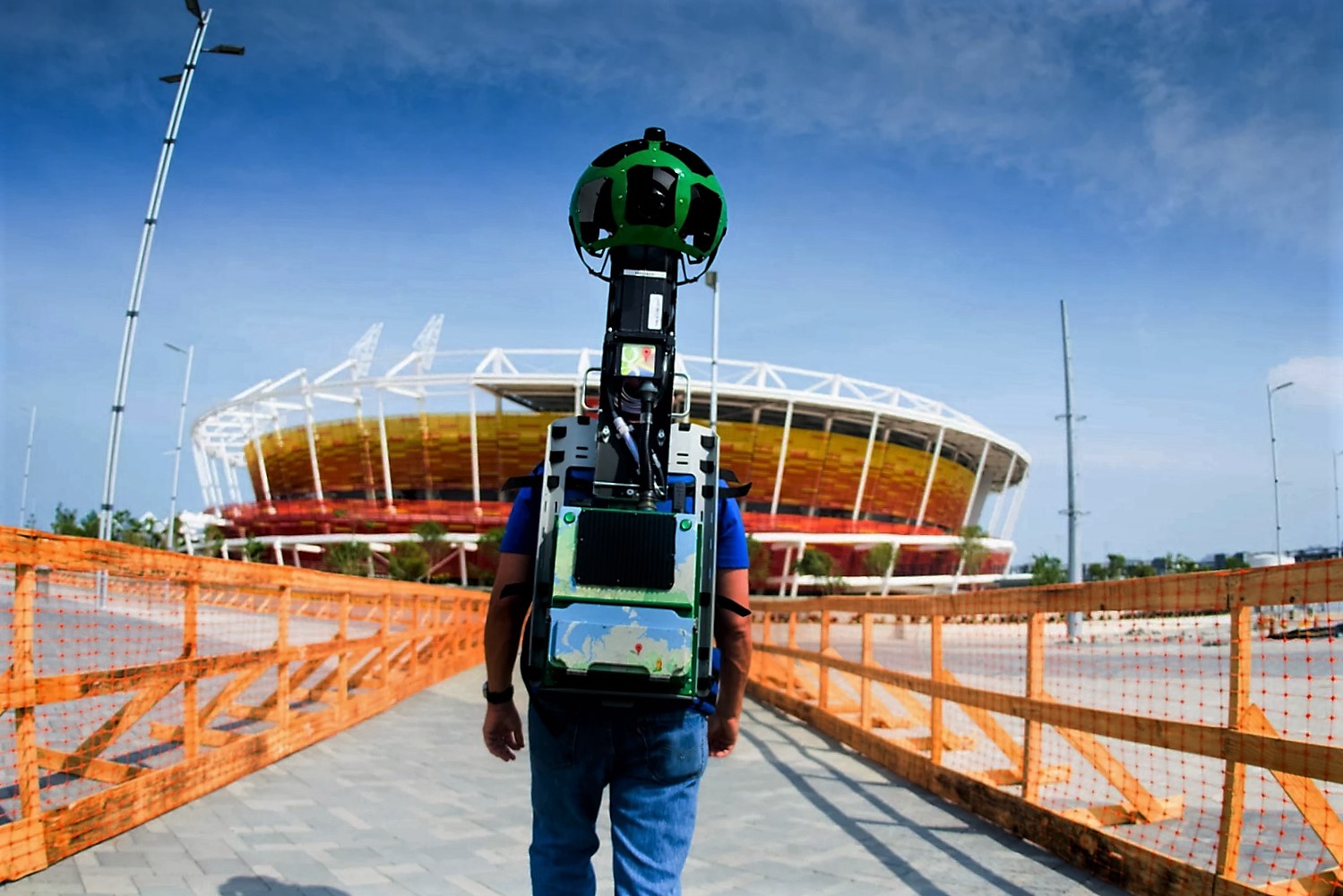 Un operador de Google Trekker captura imágenes de 360 grados del interior del Parque Olímpico de Río.
