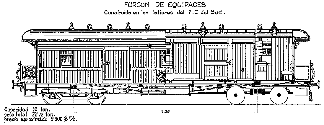 En el 6º comentario,firmado por el Profesor Mendozzi,en el 3er.link,aparece una foto de un coche,que es un RF (“Reserva Familia”),hubo 5,(dos R 2 y tres R 5),fabricado en nuestro paìs en los talleres de Escalada,tenìan salòn,22 asientos,y 10 camas,cuarto de baño,W.C.,tanque de agua,lavamanos,alumbrado elèctrico y vestìbulo,su distancia entre paragolpes es 19,963 metros los R 2,y con 4 ejes,con un peso de 30.715 kg,y 24,739 mts.de largo los R 5,con 3 ejes.y con un peso de 57.000 kg.Dicha imagen pertenece al libro de Arturo Coleman,con el tìtulo: “Mi vida de Ferroviario Inglès en la Argentina”.
