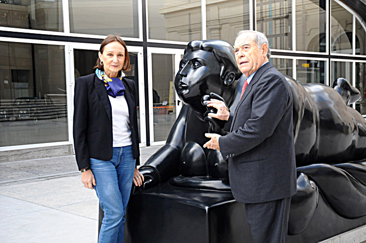 Teresa de Anchorena y Florencio Aldrey, junto a la obra de Botero en la plaza cívica del paseo.