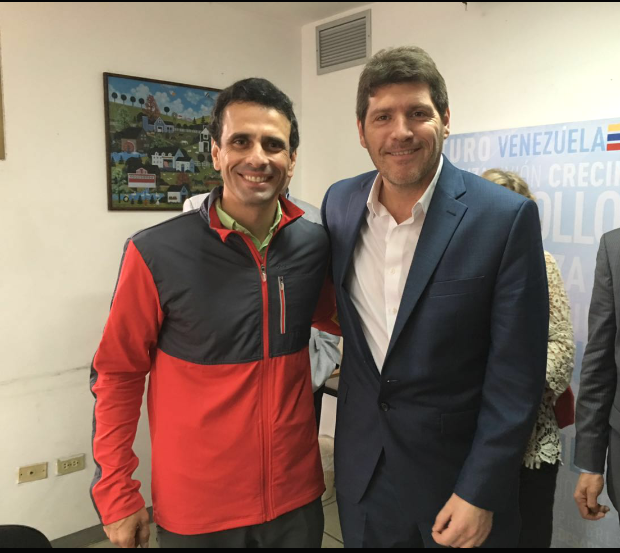 El diputado provincial por la Coalición Cívica, Guillermo Castello, mantuvo una reunión de trabajo en la capital venezolana con el actual gobernador del Estado de Miranda, y candidato a la presidencia de su país en dos oportunidades, Henrique Capriles Radonski.
