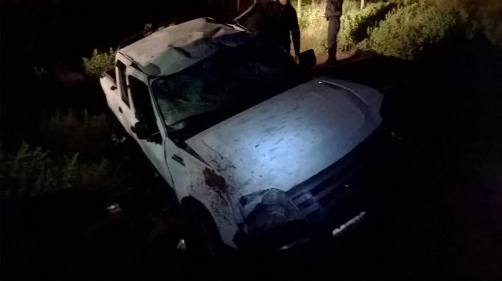 Así quedó la camioneta del Emvial tras el vuelco. Aún no se confirmó su paradero. (Gentileza Infomerlo)
