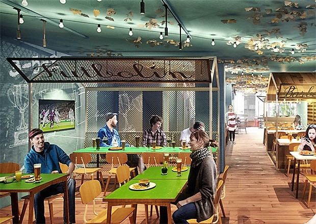 El establecimiento también contará con un cine, máquinas recreativas, metegoles y, por supuesto, copas, trofeos y medallas deportivas colgando de las paredes.