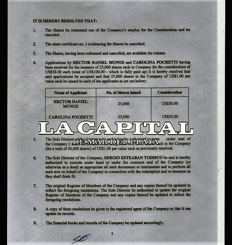 De acuerdo a los documentos, esa sociedad offshore, Gold Black Limited, fue registrada el 13 de agosto de 2010 bajo el registro número 1600279 con un capital de 50.000 acciones de 1 dólar cada una.