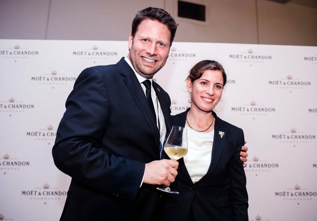 Paz Levinson junto a Andrés Rosberg, presidente de la Asociación Argentina de Sommeliers. Foto: Télam.