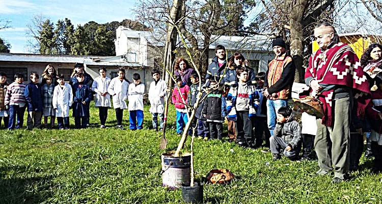 Tras hacer una ceremonia de agradecimiento y entregar ofrendas a la Madre Tierra, se realizó la plantación de un roble, fresnos y esquejos de sauces, éstos últimos extraídos de un trabajo de poda y limpieza que se realizó con anterioridad con el curso de Jardinería que dicta la Escuela de Formación Profesional 6, en el jardín de la Biblioteca Pública Municipal.