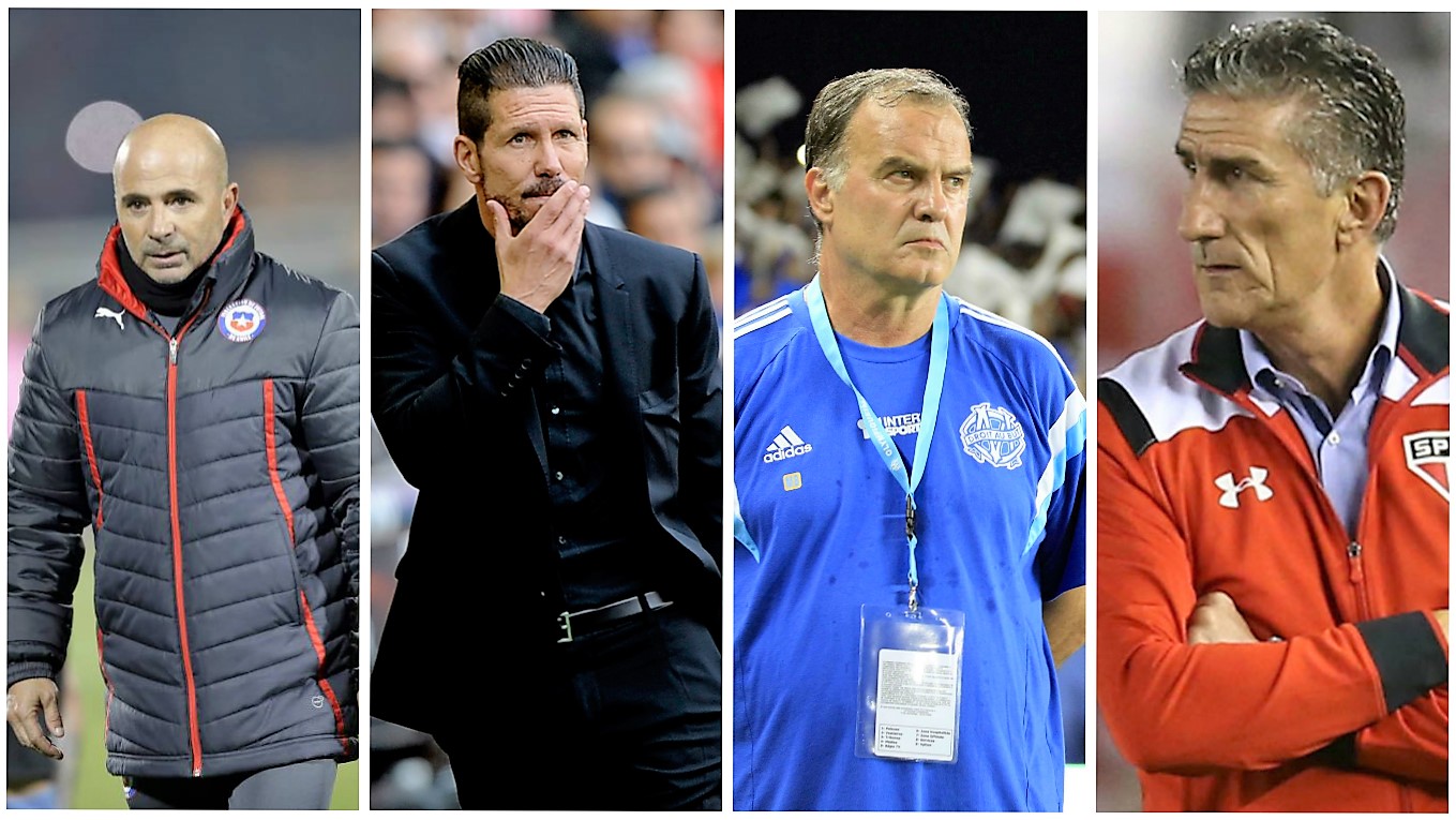 En orden impreciso, Jorge Sampaoli (flamante DT del Sevilla), Mauricio Pochettino (espléndido su trabajo en la Premier League), Edgardo Bauza y Marcelo Gallardo, pese a la desdibujada imagen que ha dado da de un tiempo a esta parte.