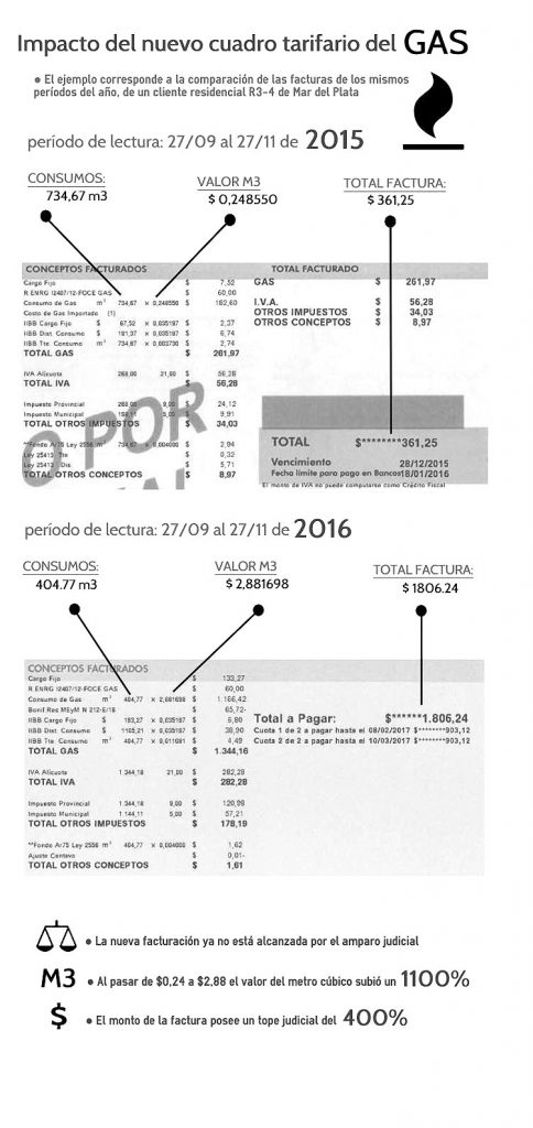 Pero para su sorpresa, ese aumento de exactamente el 400%, se aplicó sobre consumos distintos ya que mientras que en 2015 había consumido 734 metros cúbicos, en 2016 -merced a un esfuerzo por ahorrar- consumió 404 metros cúbicos de gas.