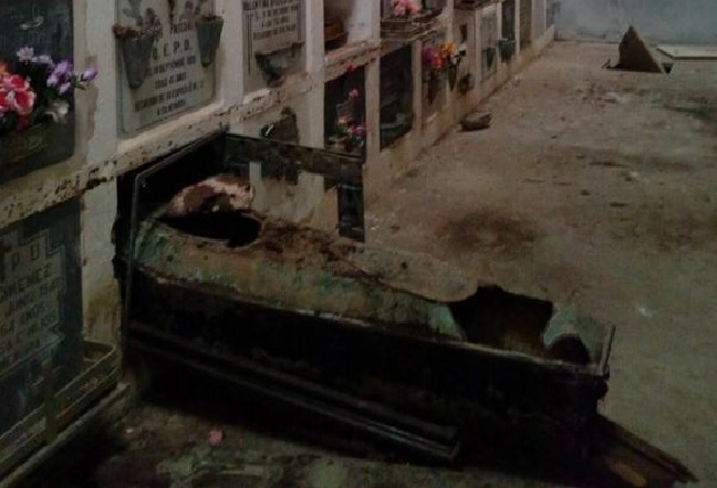 Es que al llegar se encontraron con que las puertas de acceso estaban rotas y de esa manera no podían ingresar. Cuando lo hicieron hallaron un ataúd fuera del nicho correspondiente, pero a su vez con un amplio orificio donde se podía ver para su interior.