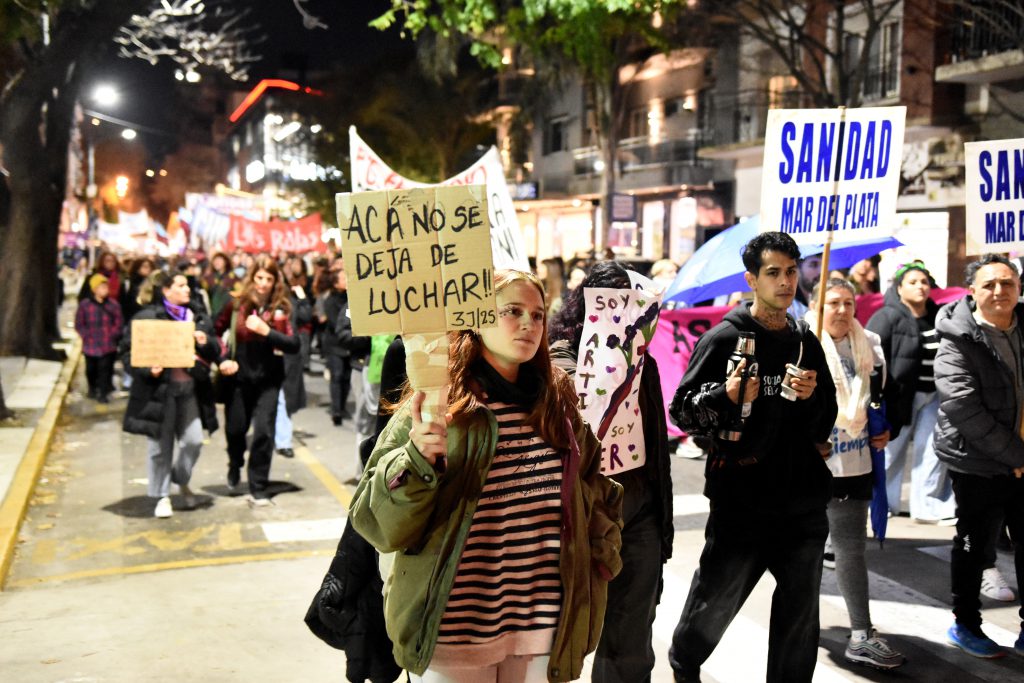 La bandera principal tuvo un tinte político al atribuir al presidente Javier Milei y al intendente Guillermo Montenegro la “responsabilidad de la violencia machista”. Esto obedece, de acuerdo a las manifestaciones de muchas mujeres, al desfinanciamiento de herramientas del Estado para asistir a mujeres en situación de violencia doméstica.
