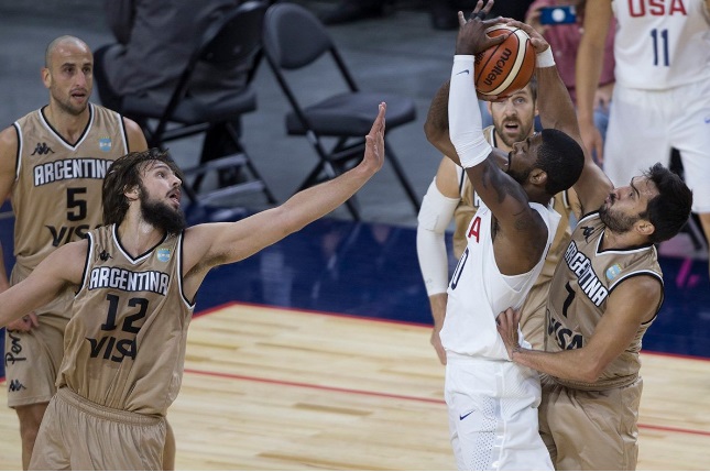 El día que Carlos Delfino volvió a jugar al básquetbol después de más de tres años y en el que regresó Emanuel Ginóbili al seleccionado, Argentina cayó ante el poderoso combinado de Estados Unidos, por 111-74 en un amistoso en Las Vegas, y cerró su gira previa a los Juegos Olímpicos de Río de Janeiro 2016.