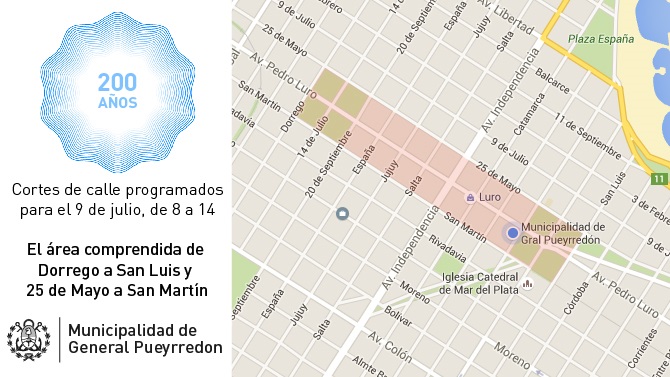 El tradicional desfile cívico-militar se realizará a las 11, mientras que el tránsito tendrá cortes entre las 8 y las 14, en el sector comprendido por Luro entre Dorrego y San Luis, como así también todas las calles transversales.