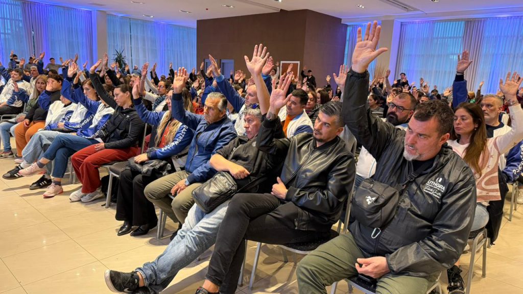 La asamblea extraordinaria se realizó en el hotel Presidente Perón con la participación de 561 afiliados. El encuentro fue encabezado por el secretario general, Pablo Santín, y contó con la supervisión de una escribana.