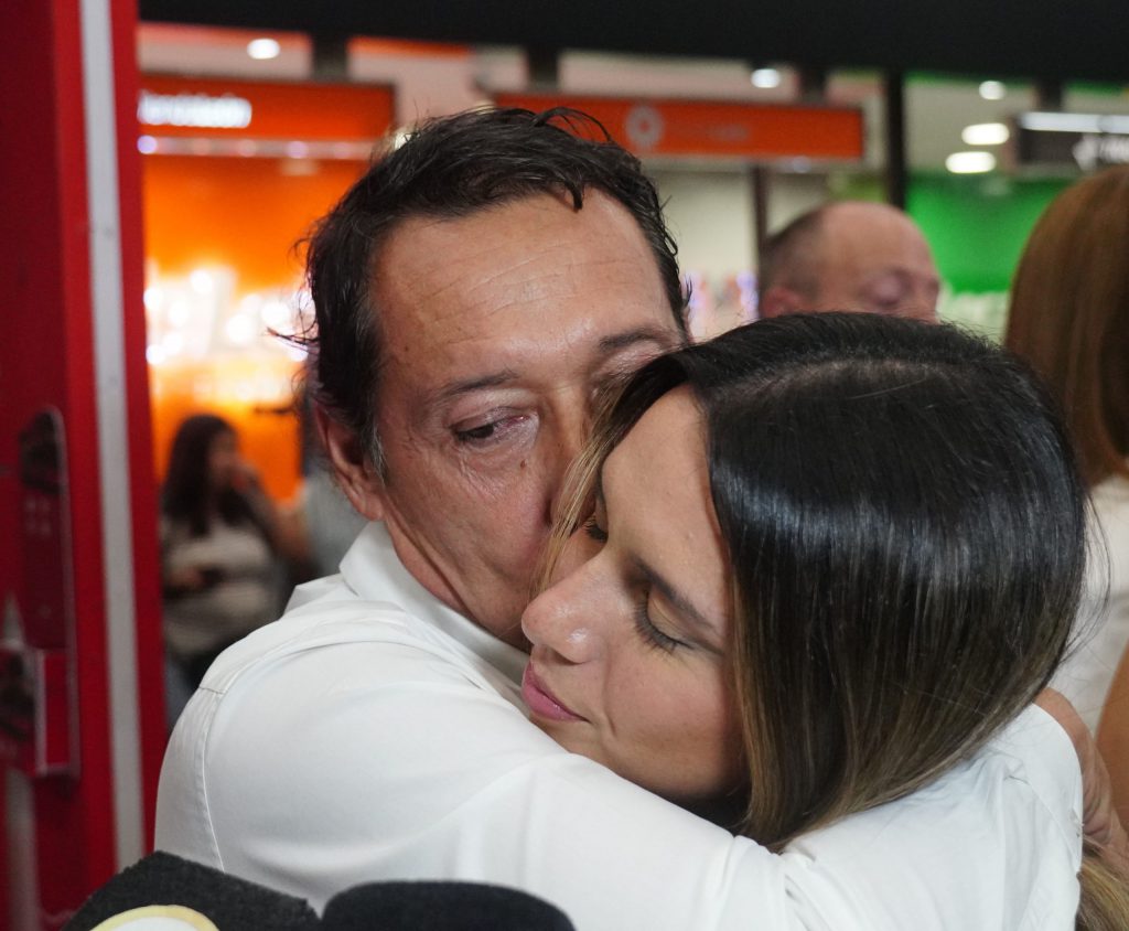 La joven, de 29 años, viajó acompañada por Junqueira, y al llegar a la estación aérea fue recibida por sus famiñiares y allegados, en medio de una gran emoción, luego de la incertidumbre que vivió en Brasil, ya que en algún momento se hablaba que podía recibir una pena de quince años de prisión.