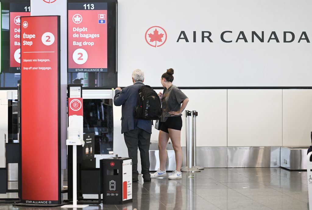 Viajeros en la zona de facturación de Air Canada en el Aeropuerto Internacional Montreal-Trudeau, en Montreal, Quebec, Canadá. Foto: EFE | EPA | Graham Hughes.