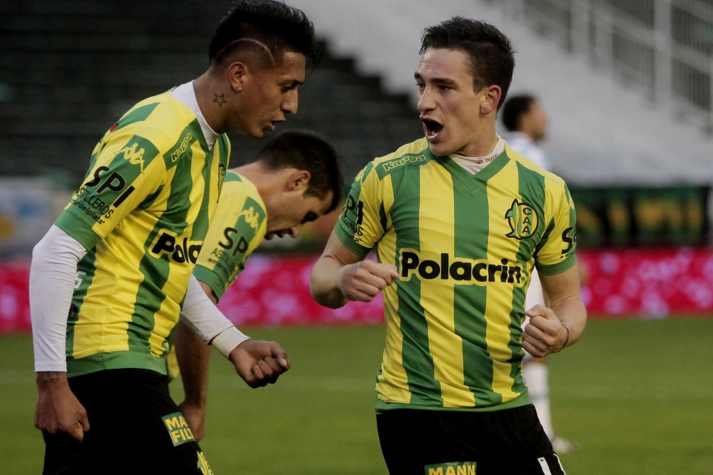 Rosales y Bandiera en el festejo del primer gol de Aldosivi.