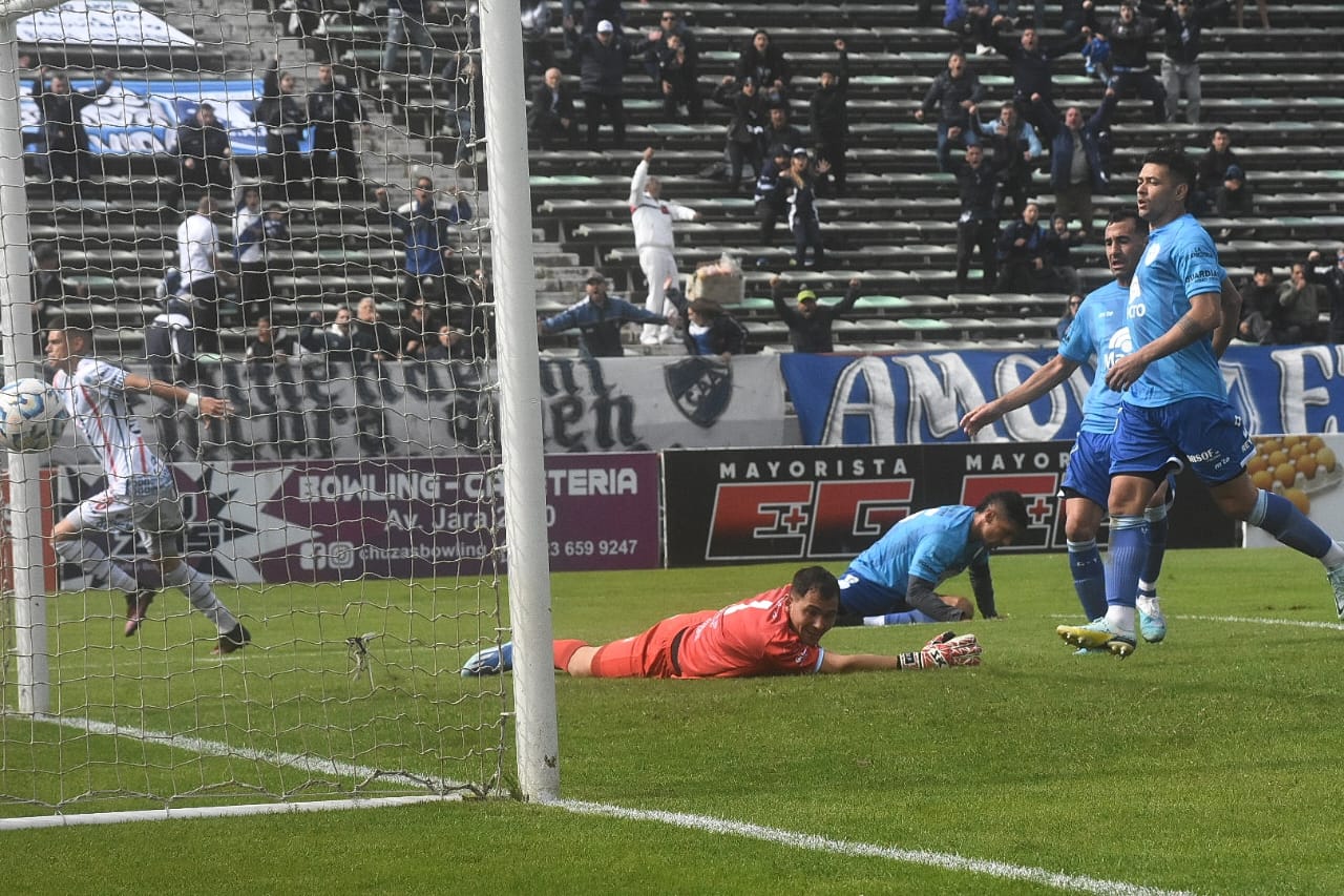 Sin embargo, el local aprovechó un error en la salida salteña. Luego de un mal despeje de Tallura que rebotó en Rinaldi, Becker quedó con la cancha de frente y una clara opción de pase al costado con Bergara, quien sin tanto ángulo ajustó muy bien su definición de derecha, rasante y cruzada.