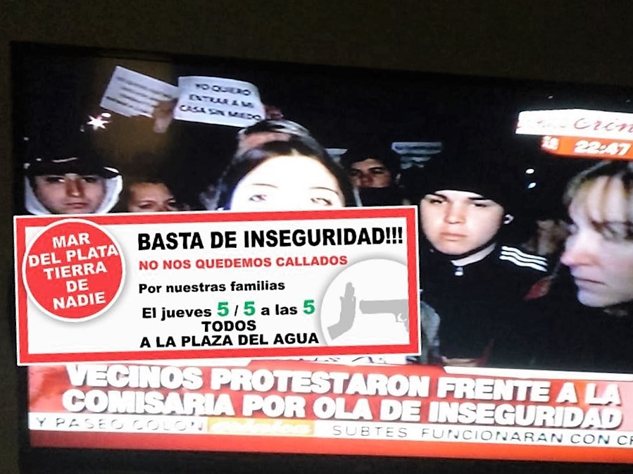 Meggetto subió una imagen a su perfil en Facebook donde se puede leer: “Mar del Plata tierra de nadie. Basta de inseguridad!!!. No nos quedemos callados. Por nuestras familias. El jueves 5/5 a las 5 (?). Todos a la plaza del Agua”.