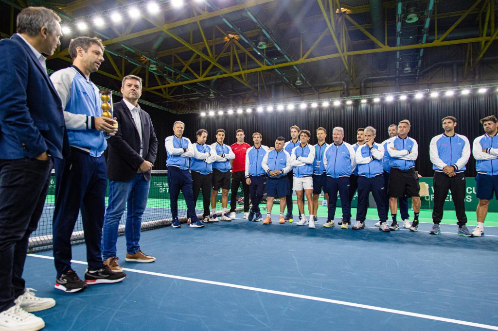 Todo el equipo argentino y también el español Marcel Granollers en el reconocimiento a Zeballos.