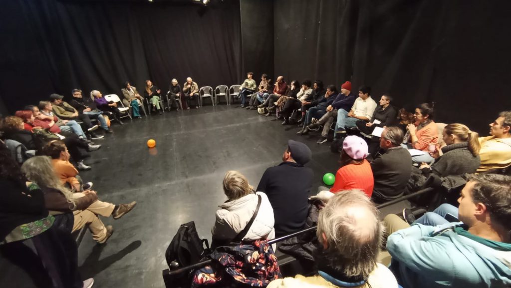 Reunida en el escenario de El Galpón de las Artes, una asamblea del sector acordó durante el mediodía de este sábado la puesta en marcha de diversas acciones para instalar el tema en la misma comunidad artística y en la comunidad en general.