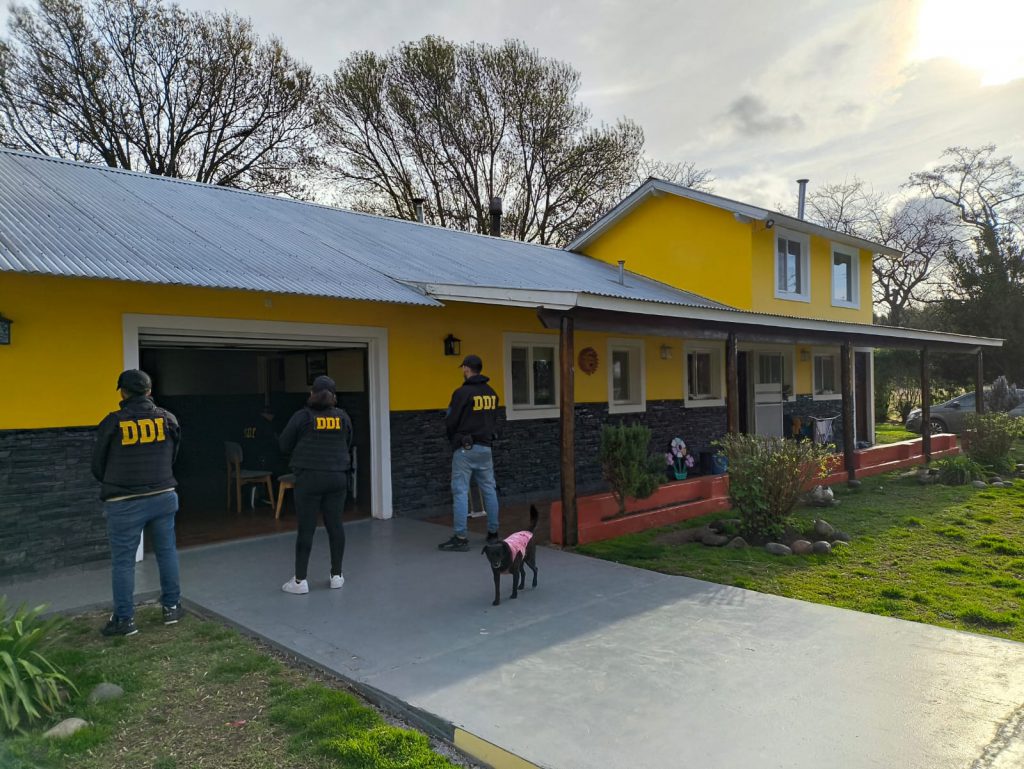 Con una orden judicial se efectuó un allanamiento en una finca ubicada en el kilómetro 43 de la ruta 88, en Miramar, donde se secuestraron el rodado en cuestión, dos camperas, cuatro teléfonos celulares, una mochila, un anillo plateado con piedra y otros elementos de interés para la causa. La propiedad presentaba amplias dimensiones, con galpones modernizados, una vivienda de lujo y una pileta climatizada.