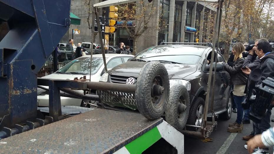 Al advertir la situación esta mañana su propietario corrió a la grúa a lo largo de varias cuadras hasta alcanzarla en la intersección de la avenida Luro y La Rioja, donde ahora permanece reclamando que liberen su vehículo.