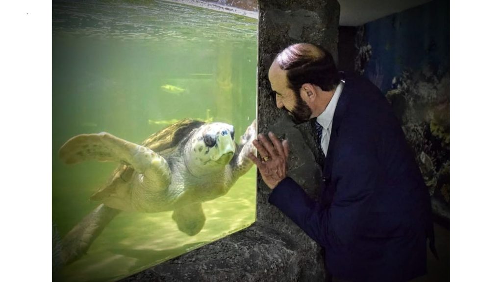 Fotografia del Dr Alfredo Mellado y el tortugo Jorge. Ph: Analia Brai.