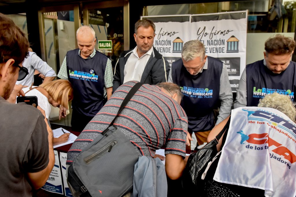 La ruidosa manifestación fue acompañada por una juntada de firmas en la puerta de la sucursal más antigua del Banco Nación en la ciudad. El gremio busca reunir un millón y medio de avales, con la intención de presentar un proyecto de ley y rechazar la privatización directamente desde el Congreso.