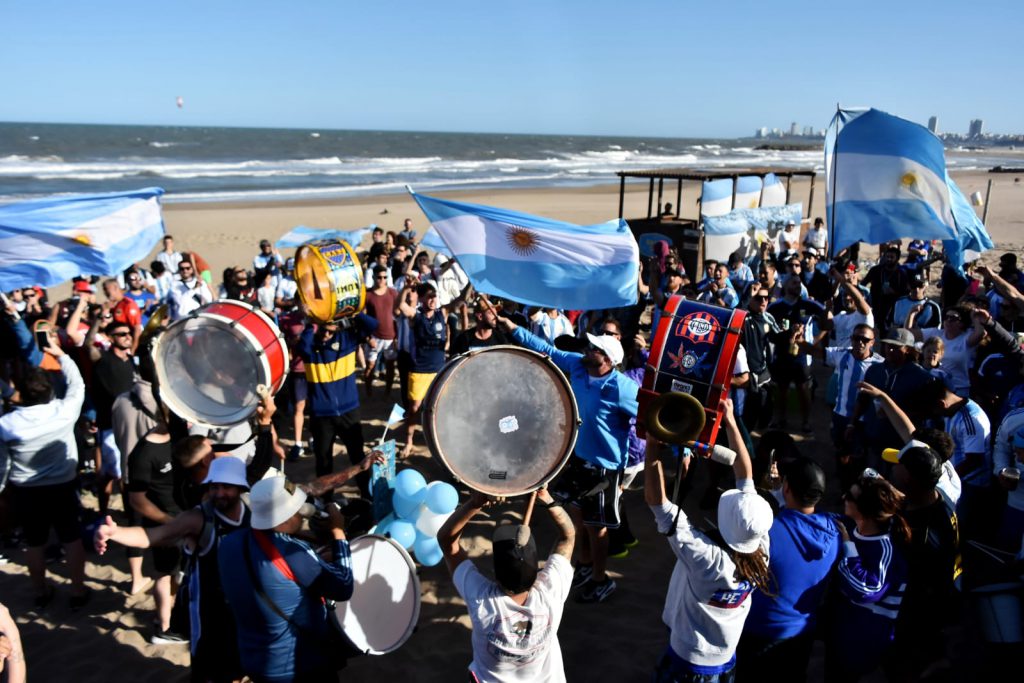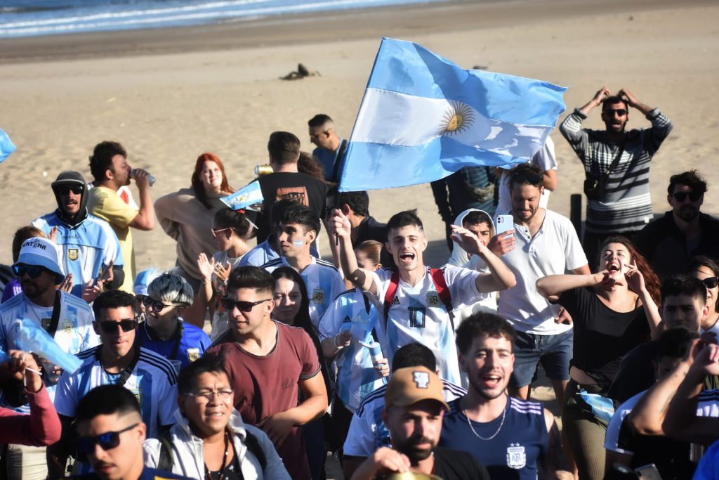 Mientras que entre las olas dos velas de kitersurfing se balanceaban por efecto del viento, Martin, Brian y Lucrecia se sumaban al grupo de entusiastas alentando a la Selección. “Vamos todos”, arengó Brian con un vaso comunitario en la mano. “Estos pibes son increíbles, sea cual sea el resultado, pero apuntamos a que nos vaya bien”, se rio su amigo Martin.