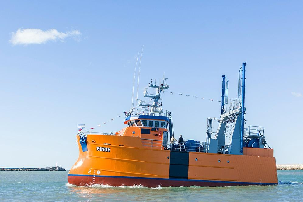 El “Gino V” busca homenajear a los tres hijos de la familia y actuales protagonistas de la actividad. Se trata de un buque moderno y versátil, en el que se destaca la doble cubierta con proa invertida con hélice de proa y la cabina de aluminio naval. En tanto, los espacios interiores y el parque de pesca hidráulico le permitirán operar tanto sobre el langostino como sobre otras especies en aguas nacionales.