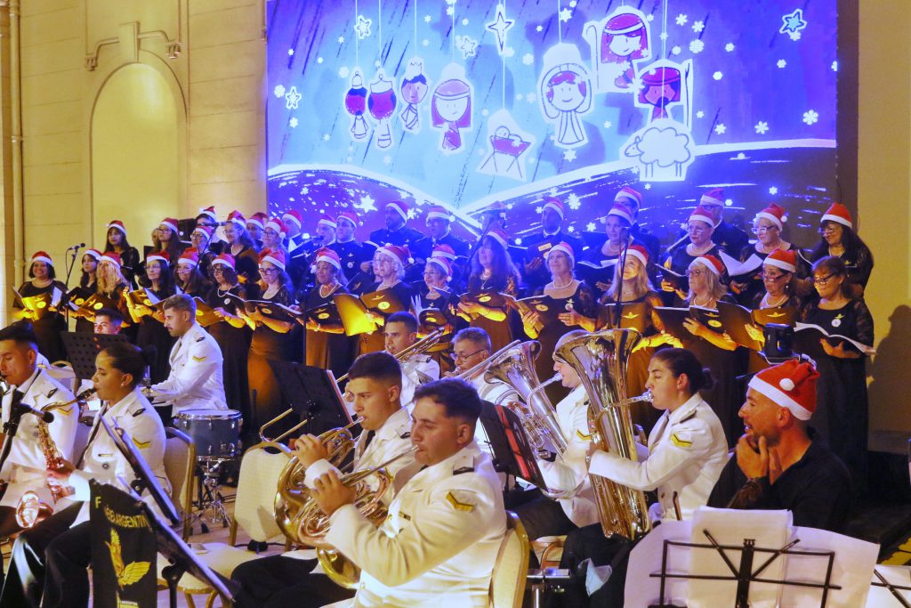 Un cálido momento musical ofrecieron este sábado a la noche la Banda y el Coro Polifónico de la Fuerza Aérea con el Concierto de Navidad en el Espacio Cultural del Paseo Aldrey.