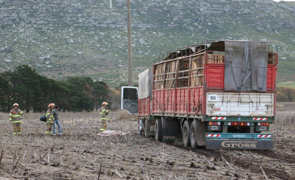 El cuerpo del chofer quedó junto al camión. El compañero intentó salvarle la vida pero todo su esfuerzo fue en vano.