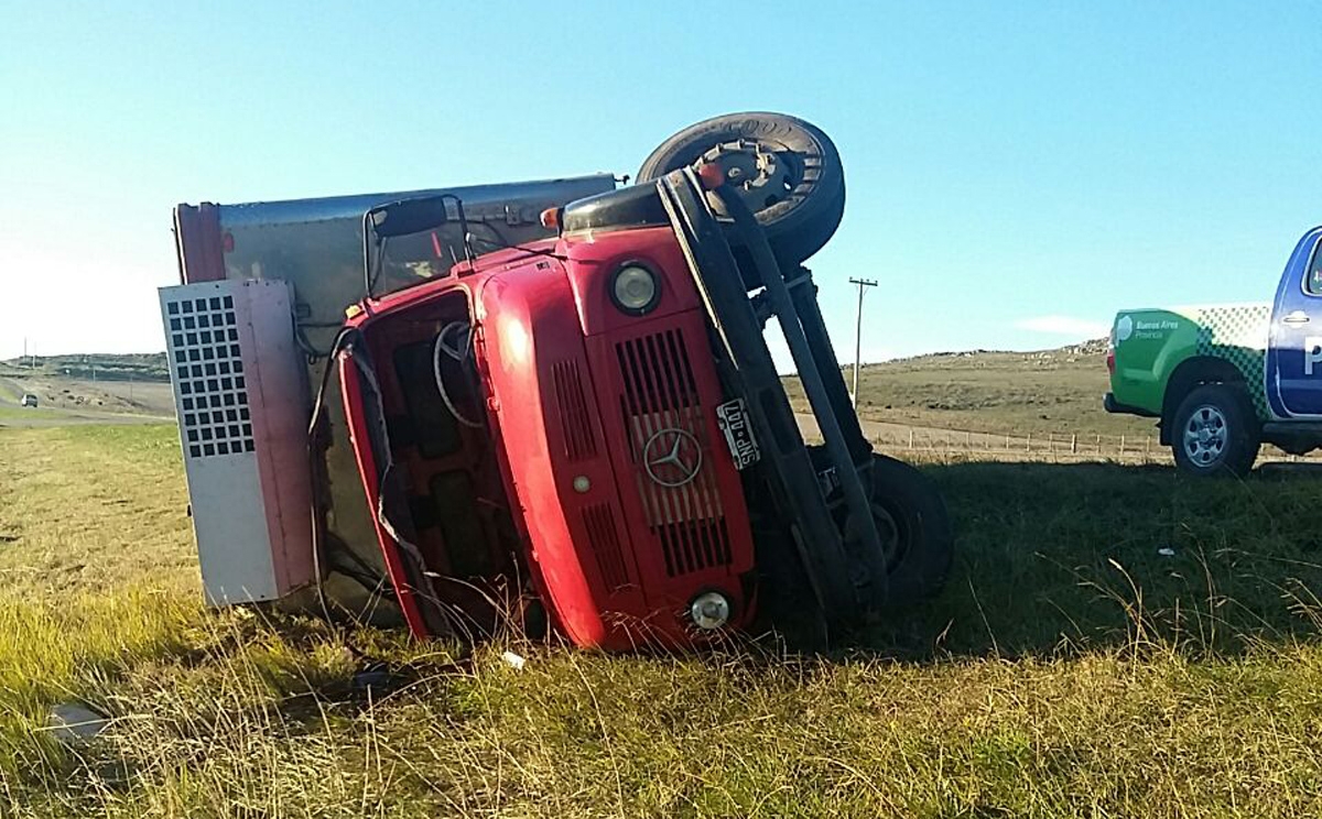 Un camionero marplatense sufrió lesiones de consideración cuando el vehículo en el que transportaba medias reses volcó a las 7.30 en el kilómetro 190 de la ruta provincial 74, a unos 10 kilómetros de la rotonda de 226 y 74
