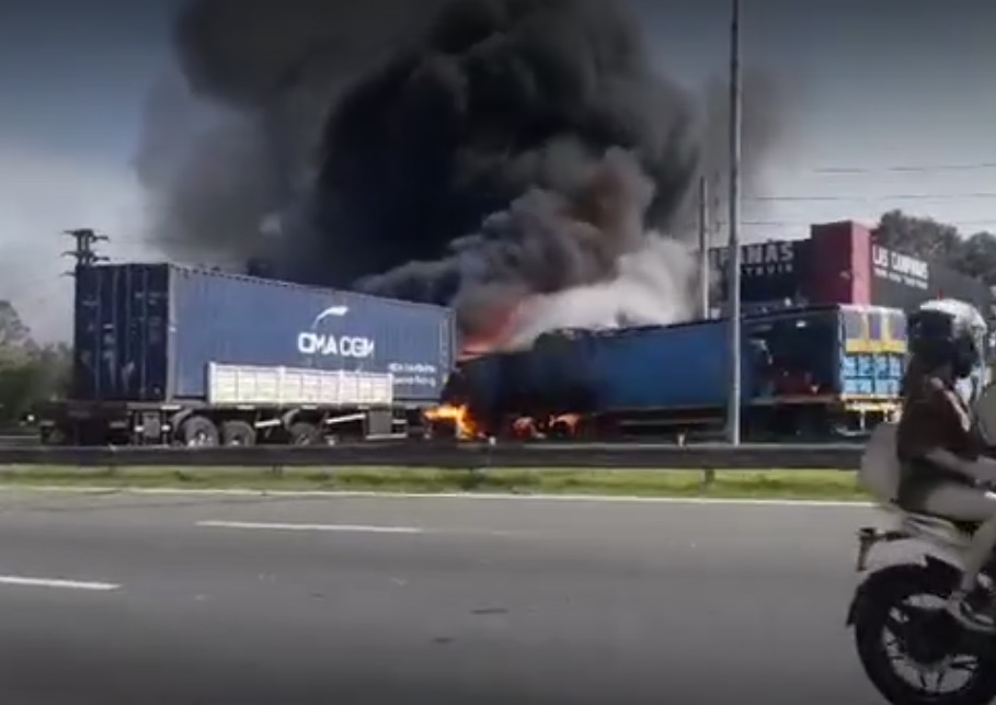 El incendio no tardó en tomar densidad al igual que la columna de humo negro que envolvió a los transportes implicados, complicó la visibilidad en la zona y dejó, actualmente, una demora de cinco kilómetros ya que además, se debió abrir paso a los camiones hidrantes y ambulancias.