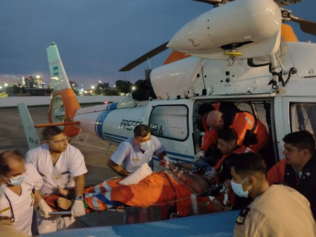 En un milimétrico operativo, personal de la Prefectura Naval Argentina realizó una exitosa aeroevacuación de emergencia de un tripulante que se descompensó producto de un golpe causado por un desmayo, mientras navegaba de salida en el Canal Punta Indio, a más de 100 kilómetros de la ciudad de La Plata.