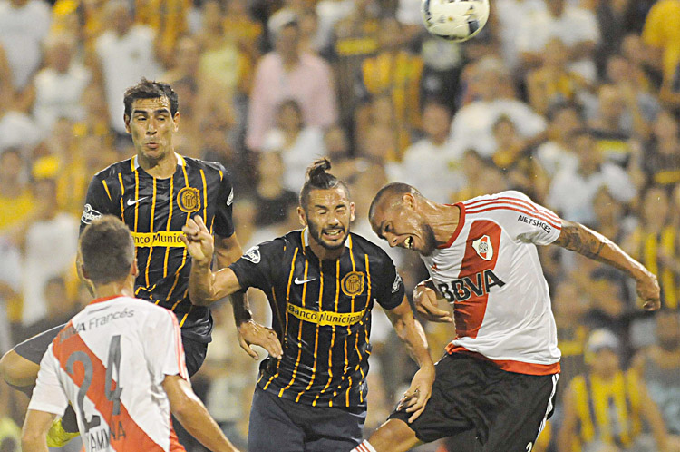 Central consiguió el empate en su primera respuesta, a los 14, cuando Larrondo aprovechó la apertura de la última línea rival y dejó a Herrera cara a cara con Marcelo Barovero para que el delantero definiera por arriba.