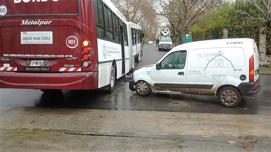 Un colectivo de la línea Bordó del servicio público de pasajeros chocó con una camioneta Renault Kangoo en la esquina de Güemes y Formosa.
