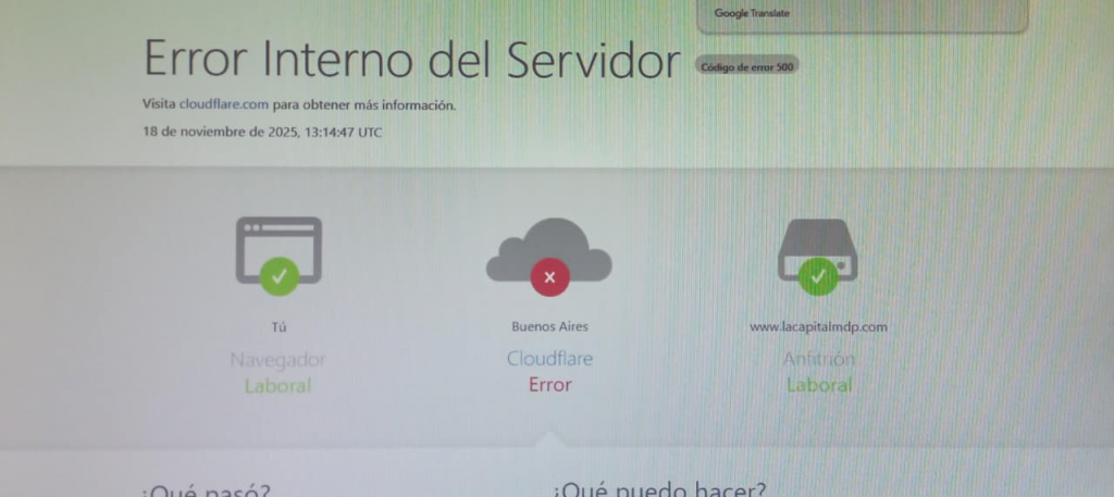 Se recibieron informes de errores 500 generalizados, así como de fallos en el panel de control y la API de Cloudflare.