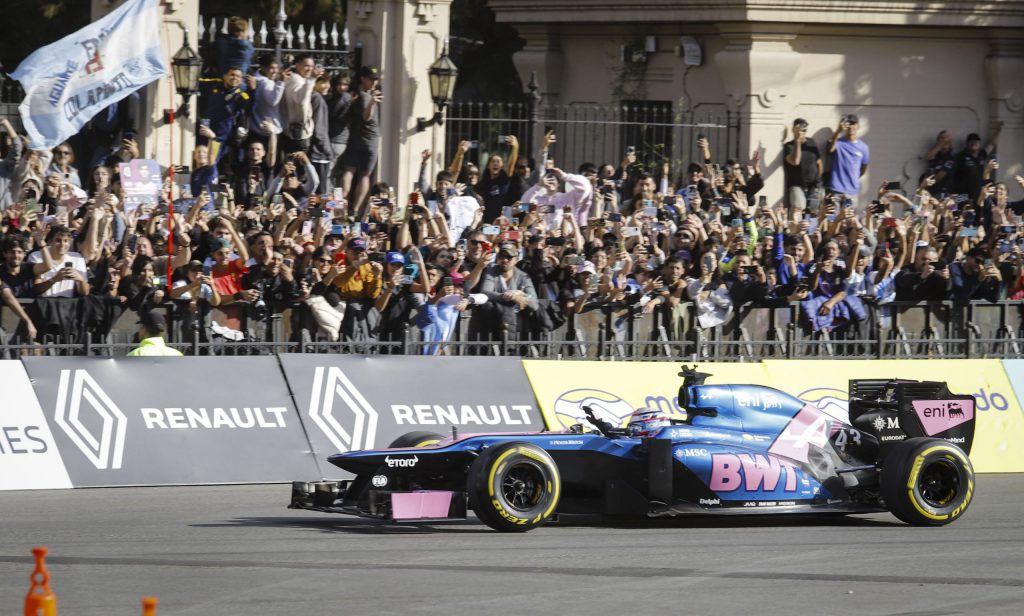 Equipado con un motor Renault V8 de 2.4 centímetros cúbicos, los colores del equipo BWT Alpine Formula One Team y el #43, su sonido ensordecedor hizo vibrar las ventanas de los edificios y provocó en el público un estado que transitó entre el estupor y la fascinación.