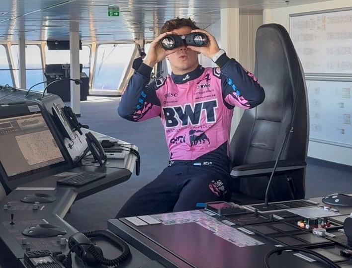 Colapinto se distiende un alto de la sesión de entrenamientos. Esperanzador inicio del Alpine