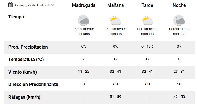 El viento, en tanto, estará del sector oeste durante la madrugada para rotar hacia el sudoeste y permanecerá en ese cuadrante hasta la noche. La temperatura mínima partirá de los 7° mientras que la máxima podrá alcanzar los 17°.