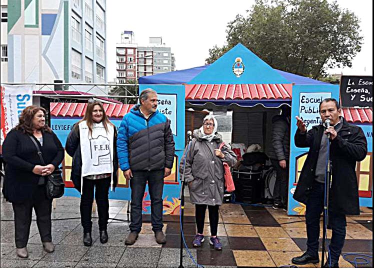 Con presencia de referentes sindicales del Frente de Unidad Docente se dio por inaugurada esta réplica, “símbolo de la resistencia a las políticas neoliberales de este gobierno”, afirmó el secretario del Interior del Suteba, Raúl Calamante. “No se puede hablar de educación de calidad con salarios por debajo de la línea de pobreza, escuelas destruidas y sin políticas socioeducativas que garanticen la presencia de los chicos en las aulas. Es responsabilidad del Estado sostener la escuela pública, y además cumplir con la ley y los fallos de la Justicia”, agregó.