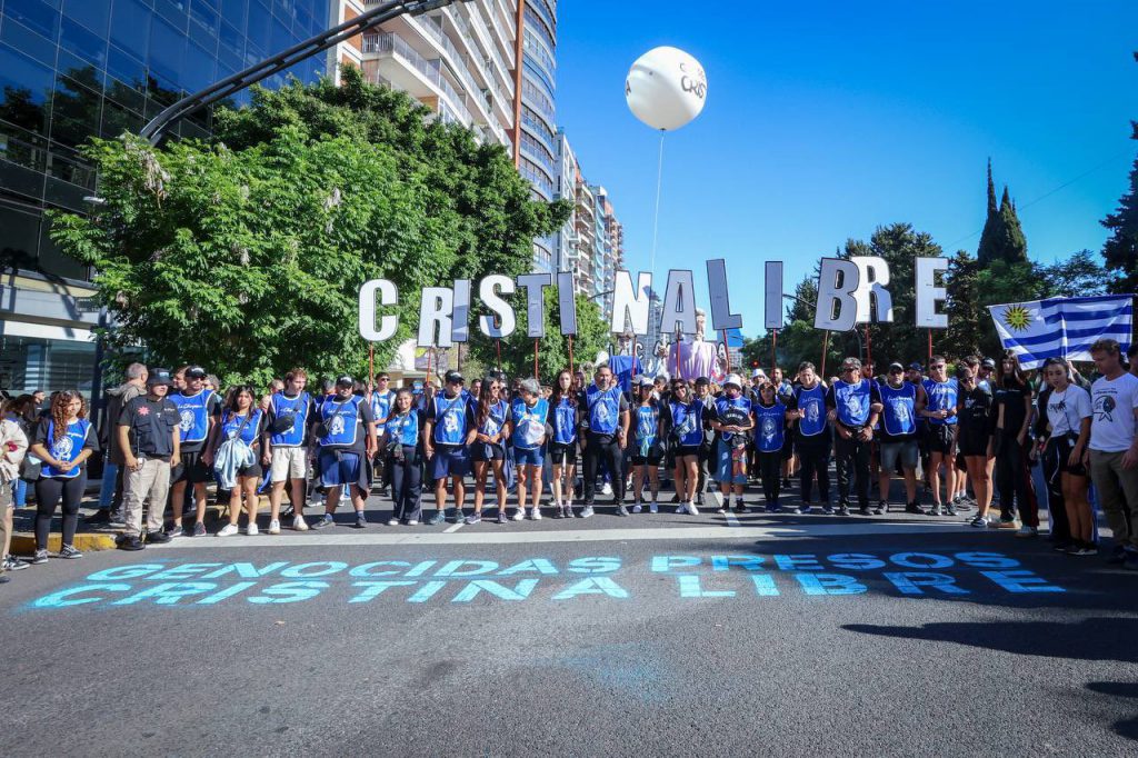 La columna incluyó una parada en San José 1111 para expresar apoyo a la ex presidenta Cristina Kirchner, en el marco de la jornada por los 50 años del golpe cívico militar de 1976.