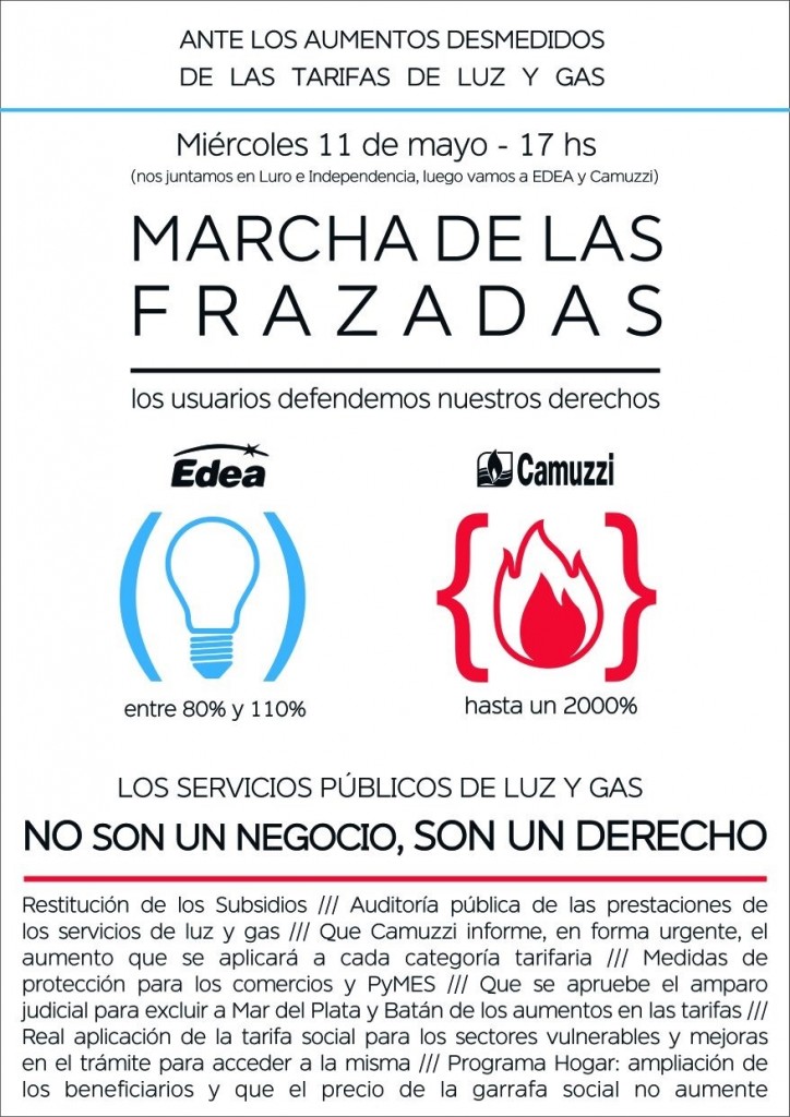 La concentración será a las 17 en Luro e Independencia. Luego, continuará con una movilización a las sedes de las distribuidoras de energía eléctrica y gas, EDEA y Camuzzi.