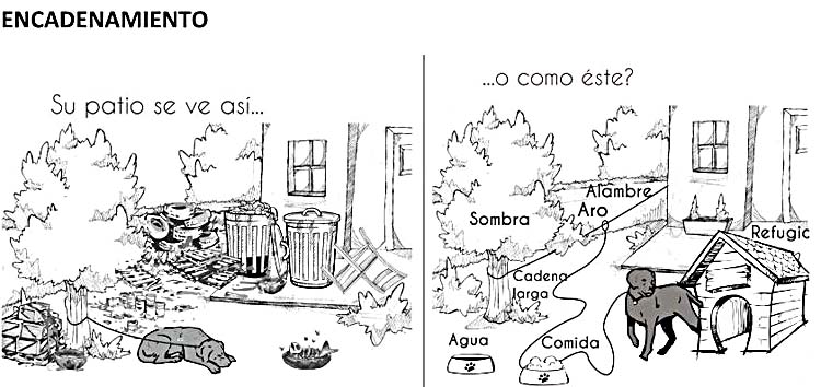 En ese sentido, desde Apaaa recomiendan “elegir un área segura, lejos de escaleras o cercos que se puedan saltar; utilizar tanto espacio despejado como pueda; despejar el área completamente, removiendo restos de árboles, vidrios, palos, o cualquier cosa con la que el perro se pueda enredar o herir; asegurarse que el perro tenga sombra en todo momento y que tenga un refugio a prueba del mal tiempo (lluvias, sol); proveer permanentemente agua en un recipiente sólido y bien afirmado de manera que no pueda volcarlo con facilidad; utilizar un collar firme, con mosquetón en lugar de una cadena de estrangulación.