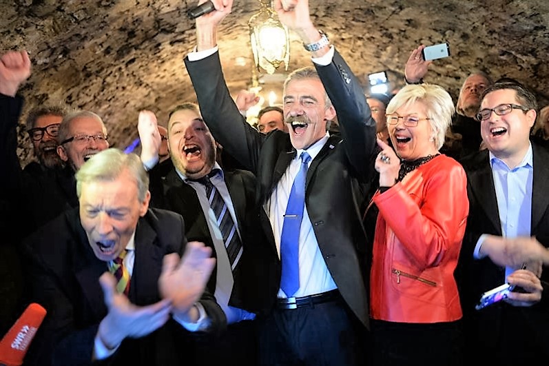 Dirigentes y partidarios de AfD celebran los resultados en el estado de Renania-Palatinado. Foto: EFE.