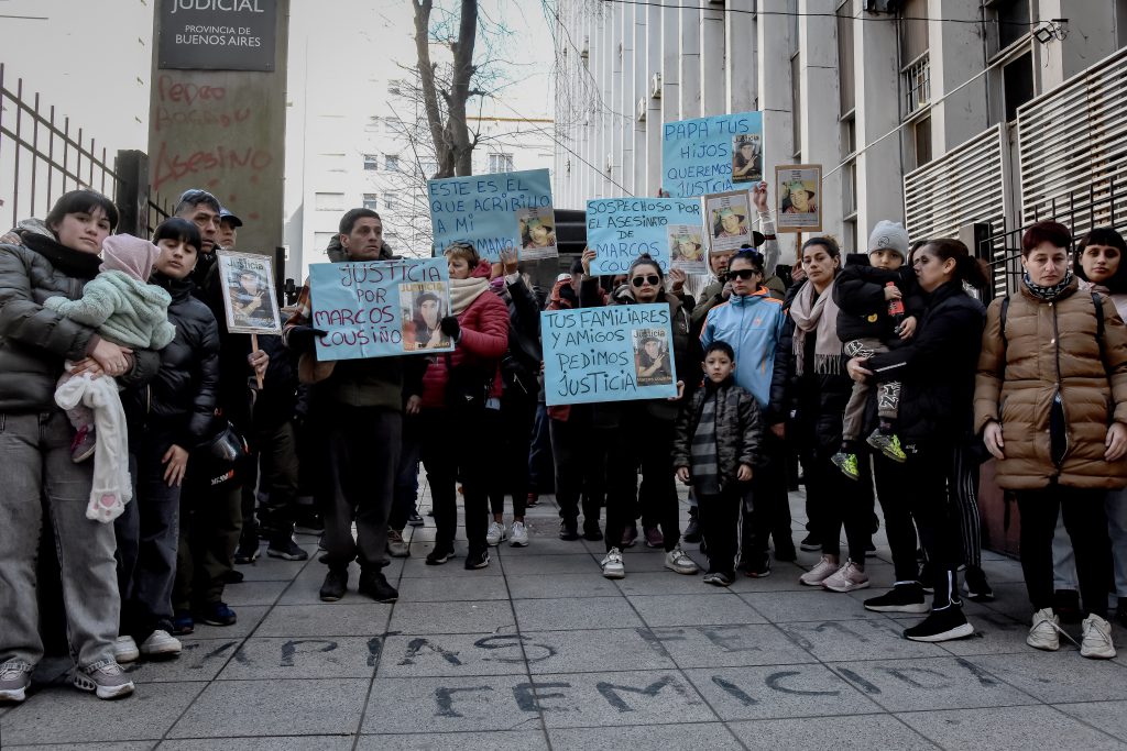 Familiares y amigos de Marcos Cousiño (48), el hombre asesinado en la puerta de su casa del barrio Pueyrredon, fueron a Tribunales este lunes al mediodía y reclamaron justicia por el crimen.